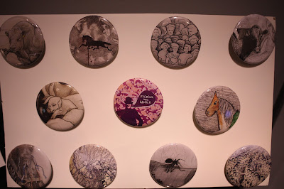 Amber spoke to a number of art classes  and gave a public presentation about her work.  As a special treat, Art Professor and exhibition curator Audrey Schmitz created a button making station where exhibition patrons could create their own buttons from a number of selected images taken from Amber's drawings. Pretty cool!